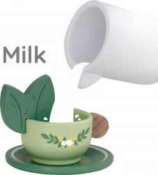 Čajnik, šalice, tanjurići, žličice, posudice za mlijeko i šećer te prostrani pladanj – sve usklađeno u nježnim pastelnim bojama za beskrajne scenarije igre.