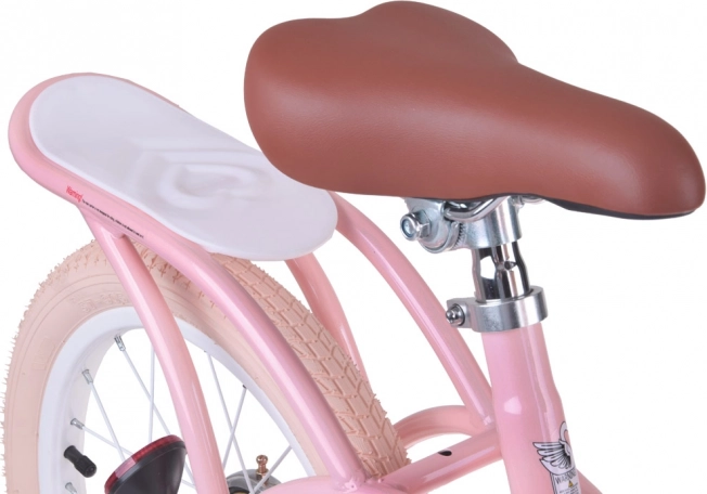 Retro dizajn upotpunjuju pletena košarica, smeđi detalji i pokrov lanca s motivom labuđih krila. Za bolju vidljivost bicikl je opremljen odsjajnicima sprijeda, straga i u kotačima, blatobranima i zvoncem. U kompletu je i roditeljska vodilica te široko razmaknuti pomoćni kotačići za maksimalnu stabilnost.