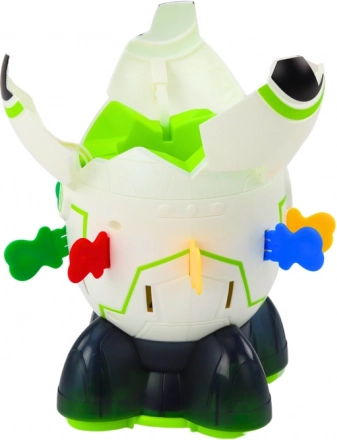 Osvijetljena baza sa zvučnom podlogom pretvara svako kolo u svemirsku predstavu koju djeca obožavaju.