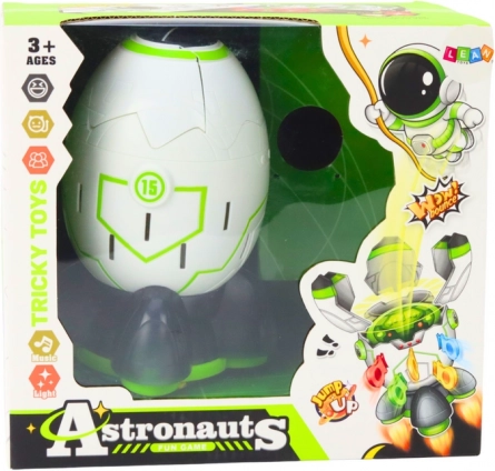 Postavite raketu na postolje, umetnite kozmonauta i naizmjenično ubacujte štapiće u otvore. Jednostavan princip, ali veliko uzbuđenje – tko umetne štapić u “to” mjesto, pokreće trenutak iznenađenja i kozmonaut iskače! Igra je intuitivna, privlačna i jamči puno smijeha za djecu i odrasle.