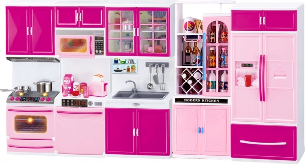 Kuhinjski namještaj za lutke uključuje hladnjak, sudoper, mikrovalnu pećnicu, perilicu posuđa, štednjak i spremišne ormariće. Svaki od ovih elemenata pažljivo je dizajniran kako bi vjerno oponašao pravi kuhinjski namještaj. Ormarići i uređaji imaju otvarajuća vrata, što omogućuje umetanje i vađenje priloženih prehrambenih proizvoda i kuhinjskih dodataka.