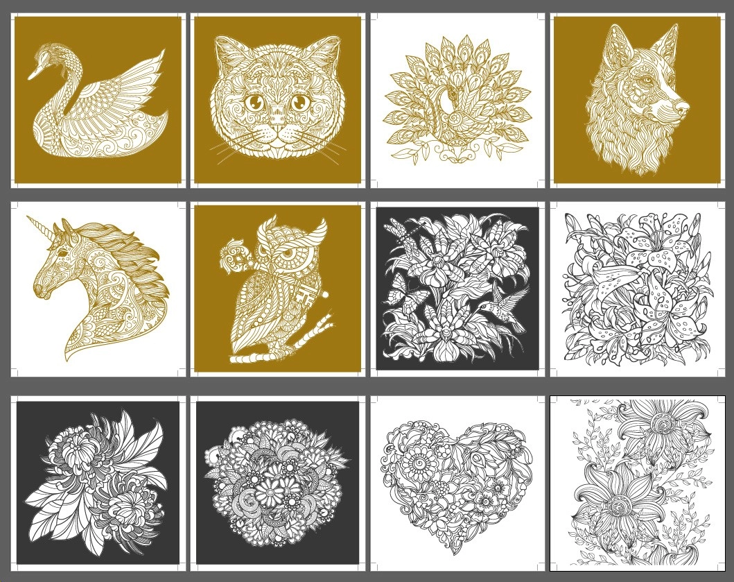 Ovaj elegantni set bojanki razveselit će i djecu i odrasle. Metalni sjaj zlatne i srebrne folije daje svakom motivu luksuzan izgled i ističe vaše kolorističke kreacije. Bojanke sa životinjskim i biljnim uzorcima potiču kreativnost, opuštanje i finu motoriku.