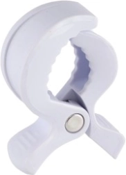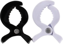 Ove univerzalne kopče za kolica olakšavaju svakodnevne šetnje s bebom. Zahvaljujući čvrstom stisku i protukliznim zupcima sigurno drže pelenu, ručnik ili prekrivač na mjestu, bilo da puše vjetar ili prelazite preko neravnina. Kompaktne dimenzije i lagana konstrukcija osiguravaju jednostavnu upotrebu i spremanje.