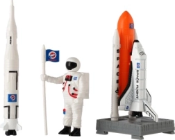 Komplet sadrži sve potrebno za simulaciju svemirske misije - od astronauta do raketoplana.