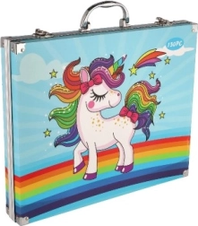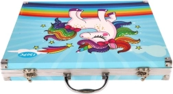 Ovaj kofer impresionira svojim veselim dizajnom s jednorogom s dugom grivom i repom, što ga čini idealnim za male umjetnike.