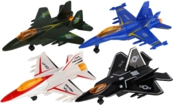 Ovaj set sadrži četiri zrakoplova u različitim bojama - plava, crna, zelena i bijela, koji donose raznolikost u dječje igre.