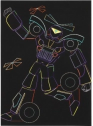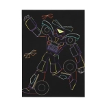 Slikocrti donose zabavu i razvoj kreativnosti za djecu i odrasle. Dovoljno je upotrijebiti priloženu olovku i otkriti skrivene boje ispod crnog sloja. Pakiranje sadrži četiri lista formata A4 s motivima omiljenih Transformersa.