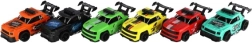 Set sadrži šest vozila različitih boja: narančasta, crna, zelena, žuta, crvena i tirkizna. Svako vozilo ima jedinstven dizajn i dekoracije koje naglašavaju trkaći izgled.