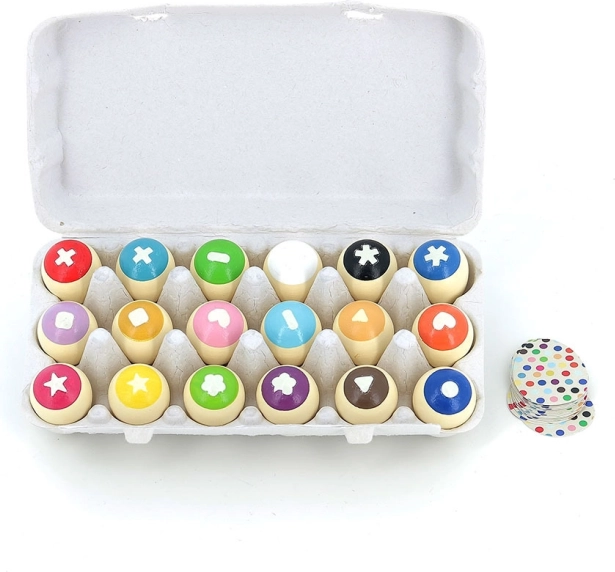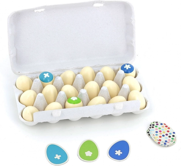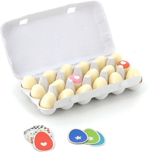 - 18 kartica u obliku jaja s raznim simbolima i bojama