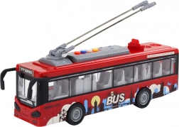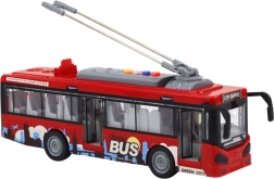 Realistični crveni trolejbus u mjerilu 1:16 oduševit će male ljubitelje javnog prijevoza. Nudi svjetlosne i zvučne efekte, frikcijski pogon za vožnju nakon potiska, otvarajuća vrata i pokretni strujni sakupljač. Robusna izrada osigurava izdržljivost i sigurnu igru.
