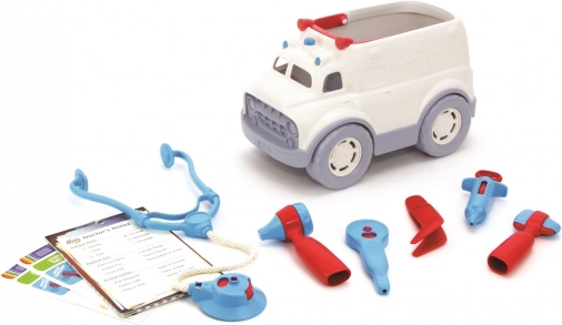 Ova izdržljiva i ekološka hitna pomoć s kompletnim liječničkim setom brenda GREEN TOYS idealna je za male doktorice i doktore. Djeca mogu krenuti do pacijenata, obaviti pregled i sve zabilježiti na karton pacijenta. Igra uloga pomaže razumjeti posjet liječniku i jača samopouzdanje.