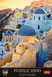 Puzzle TREFL Premium Plus s motivom Oia, Santorini, koji stvaraju zadivljujuću sliku od 1000 dijelova. Visokokvalitetne puzzle s originalnim dizajnom i preciznom izradom.
