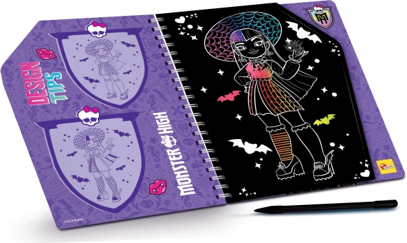 Otkrijte zabavan način crtanja i ukrašavanja sa strugalica skicirom Monster High. Dovoljno je lagano sastrugati crnu površinu i otkrit ćete zadivljujuće kolorističke efekte koji vašim kreacijama daju jedinstven stil.