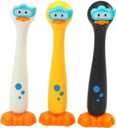 Zabavan set triju ronilačkih pačića za vodu za djecu od 6 godina u bojama bijela, crna i žuta. Obogaćeni utegom za lako ronjenje, potiču spretnost, koordinaciju i samopouzdanje u vodi. Idealni za kadu i bazen, s CE certifikatom i usklađeni s EN71.