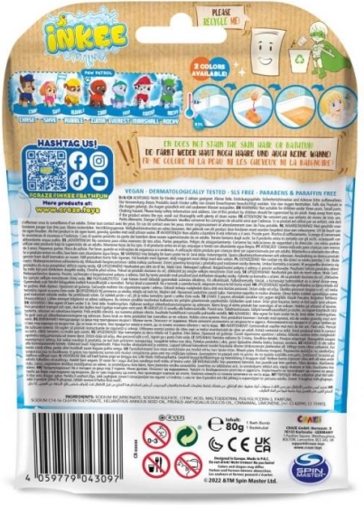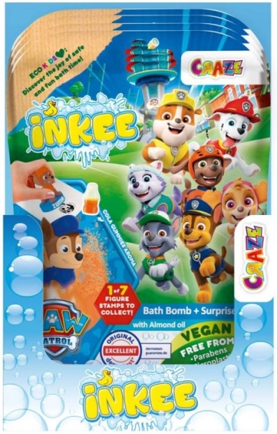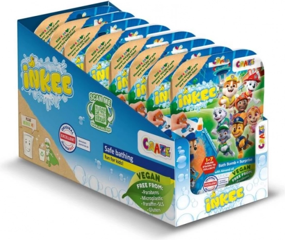 Šumeća bombica za kupanje Inkee s licencom Paw Patrol donosi u kadu šareni doživljaj i slatki miris Cola Gummies. Unutra se krije iznenađenje koje će oduševiti djecu – žig s jednim od omiljenih junaka. Svaka kugla teži 80 g i zapakirana je u ekološko pakiranje.