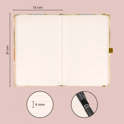 Unutra vas čeka 172 stranice kvalitetnog žutog papira, idealnog za svakodnevno pisanje. Bilježnik je izvrstan kao dnevnik, za radne bilješke, planiranje i kreativne ideje. Unutarnji džep prima sitnice, posjetnice ili naljepnice.