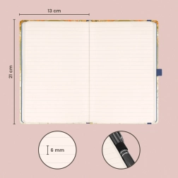 Linirane stranice na žutom papiru osiguravaju ugodno čitanje i pisanje bez zamaranja očiju. S 172 stranice imate dovoljno prostora za svoje misli, zadatke i kreativne ideje – od osobnog dnevnika do poslovnih sastanaka.
