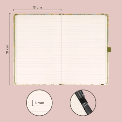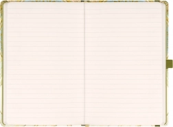 Elegantna linirana bilježnica s motivom ALFONS MUCHA – Poezija u praktičnom formatu 13 × 21 cm. Nudi tvrde korice s elastičnim zatvaranjem, povez za olovku i unutarnji džep. Unutra je 172 točkastih stranica na žutom papiru za vaše ideje, dnevnik ili poslovne bilješke.