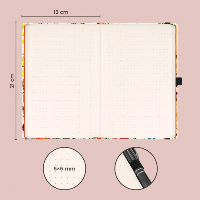 Ova stilska bilježnica iz kolekcije Katarine Winterove ističe se čvrstim koricama s cvjetnim ilustracijama i promišljenim detaljima za ugodno svakodnevno korištenje. Zahvaljujući točkastom rasteru izvrsno služi za bullet journal, crtanje, skiciranje i organizaciju zadataka.