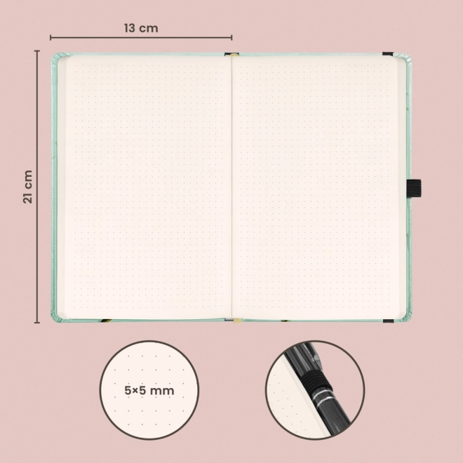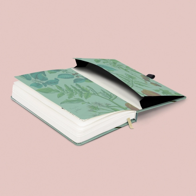 Stilni notes iz kolekcije Kateřine Winterove s retro ilustracijama ptičica razveselit će ljubitelje papira i dizajna. Nudi tvrde korice, praktično zatvaranje elastičnom gumicom, džep za sitnice i petlju za olovku. Unutra je 172 točkanih stranica na ugodnom žutom papiru veličine 13 × 21 cm – idealno za bilješke, planiranje i bullet journal.