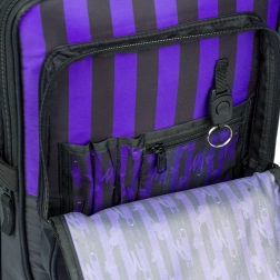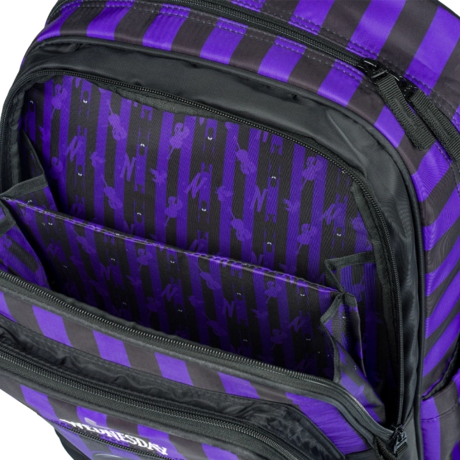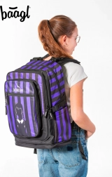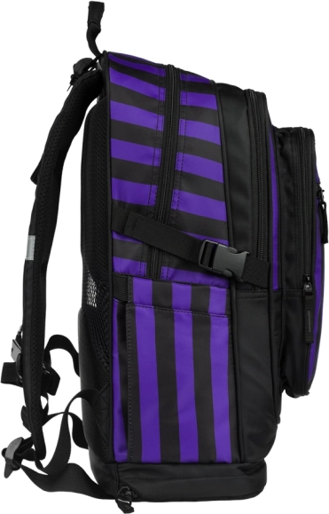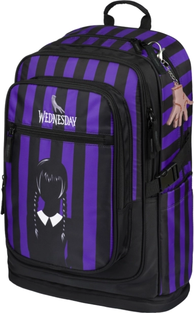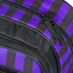 Školski ruksak CUBIC WEDNESDAY spaja izražajan dizajn u crno‑ljubičastim prugama s promišljenom ergonomijom za svakodnevnu udobnost. Zahvaljujući potpuno podesivim ramenim, prsnom i bočnim kompresijskim trakama ruksak lako prilagodite stasu, dok prozračna leđa olakšavaju nošenje i pri punom opterećenju.