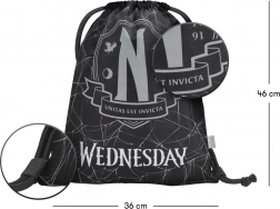 Stilska vrećica za leđa s motivom WEDNESDAY Nevermore idealna je za obuću, sportsku opremu i sitnice. Izrađena je od čvrstog, perivog materijala, a zahvaljujući čvrstim vezicama lako se zateže i udobno nosi na leđima.