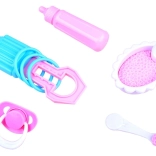 Set uključuje praktične dodatke: zdjelicu s kašicom, žličicu, dudu varalicu, bočicu i zvečkicu. Djeca mogu hraniti, tješiti i uspavljivati svoju bebu.