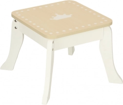 Dio pakiranja je i stolica kako bi sjedenje bilo udobno. Proizvod je u potpunosti izrađen od glatko brušenog drva, premazan netoksičnim bojama, u elegantnom bijelo-zlatnom dizajnu koji osvaja kao ukras dječje sobe.