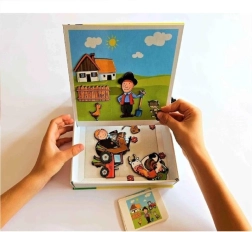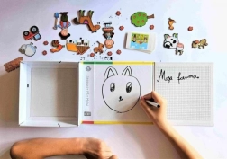 Ovaj pametan set spaja pisanje, brisanje i slaganje magnetskih sličica u jednu kompaktanu igru. Djeca mogu vježbati slova i brojke, crtati flomasterom koji se briše i stvarati vlastite prizore s farme. Zahvaljujući magnetima pojedini dijelovi dobro prianjaju na podlogu, što ga čini idealnom zabavom i u autu i kod kuće.