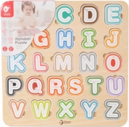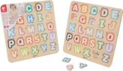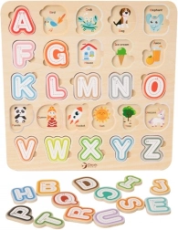 Zabavna i istovremeno edukativna igra za najmlađe: šarena drvena slagalica s abecedom razvija finu motoriku, logiku i prepoznavanje slova. Ispod svakog slova krije se sličica na engleskom, pa djeca prirodno usvajaju osnove engleskog jezika od najranije dobi.