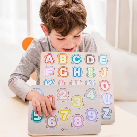Kvalitetna drvena ploča i šareni lakirani dijelovi osiguravaju dugotrajnost i privlačan izgled za svakodnevno učenje kroz igru.