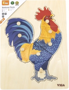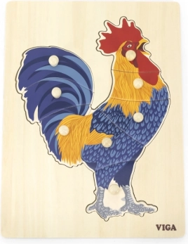 Otkrijte zabavne drvene puzzle s motivom pijetla od VIGA, inspirirane metodom Montessori. Zahvaljujući ručkama na dijelovima djeca lako manipuliraju, razvijaju finu motoriku, koordinaciju ruka-oko i opažanje oblika. Žive boje i kvalitetno drvo podupiru osjetilno učenje i dugotrajnu izdržljivost pri igri.