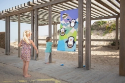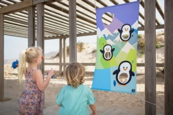 Pretvorite vrt, igralište ili park u arenu punu smijeha i kretanja. Šareno platno s pingvinima lako se pričvrsti užadima za stablo ili konstrukciju, a djeca mogu početi bacati mekane „ribe” u pripremljene otvore. Igra prirodno razvija preciznost, strpljenje i timski rad.