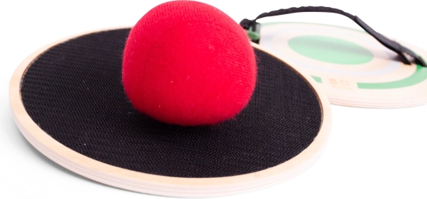 Zabavna vanjska igra za dva igrača od 4 godine koja razvija grubu motoriku, koordinaciju oko–ruka i motivira djecu na aktivno kretanje na otvorenom. Set sadrži meku lopticu i okrugle hvataljke s čičak trakom za lako hvatanje, čak i za početnike.