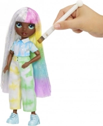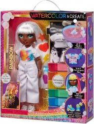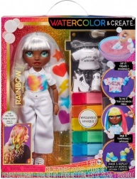 Otkrij svijet boja s kreativnom lutkom RAINBOW HIGH Watercolor & Create. Naspi prašak u vodu, umači kosu ili outfit i uz pomoć spužvice stvaraj originalne uzorke. Gumice iskoristi za batikanje i izradi jedinstven streetwear izgled. Boje su ispirljive, pa možeš stil mijenjati iznova i iznova.