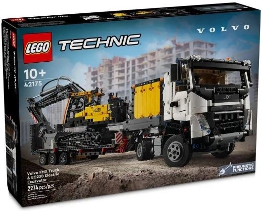 Sastavite modernu građevinsku flotu s LEGO Technic setom za djecu od 10 godina: VOLVO FMX teretni kamion s ravnom prikolicom i detaljnim električnim bagerom EC230 s pneumatskim funkcijama. Otvarajuća vrata, nagibna kabina s rednim šesterocilindrašem, gornji dio koji se okreće 360°, funkcionalna ruka i punionica za još realističniju igru.
