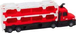 Otkrijte zabavu 2-u-1 – veliki crveni autotransporter koji se nakon otvaranja pretvara u trkaću stazu dugu 211 cm. Uključuje svjetlosne i zvučne efekte, 2 vatrogasna autića 1:64 i 7 prometnih znakova za kreativnu igru i učenje prometnih pravila.