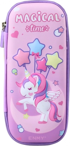 Ljubičasta rasklopiva pernica Unicorn 3D 23x10x5 cm