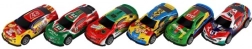 Šestodijelni set trkaćih autića spaja izdržljiv metal i plastiku za duži vijek trajanja i odličan doživljaj vožnje. Zahvaljujući sustavu navijanja unatrag dovoljno je povući autić unatrag i pustiti – izletjet će naprijed i utrka može početi.