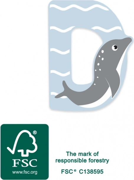 Drveno slovo D iz nove životinjske ABC serije savršen je izbor za zabavno učenje i stilsku dekoraciju. Zahvaljujući čvrstoj izradi i glatkim, zaobljenim rubovima, djeci ugodno leži u ruci i sigurno se koristi. Pastelne boje s motivom dupina prostoru daju razigran dojam.