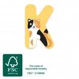 Drveno slovo K marke Small foot savršen je izbor za uređenje dječje sobe. Slovo je izrađeno od 100% certificiranog FSC drveta, što jamči visoku kvalitetu i ekološku prihvatljivost. Gornji dio slova ukrašen je pastelnim bojama koje će privući pažnju svakog djeteta.