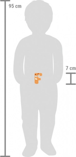 Drveno slovo F s prekrasnim dizajnom lisice je savršena dekoracija za dječju sobu. Ovaj proizvod nudi kvalitetnu obradu od certificiranog drva i zaobljene rubove za sigurnu uporabu.