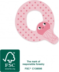 Drveno slovo Q s veselim dizajnom meduze idealan je dodatak svakoj dječjoj sobi i učna pomoć za slaganje riječi. Izrađeno od certificiranog FSC drva, osiguravajući održivi izvor.