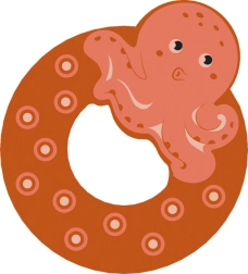 - Pastelni dizajn s hobotnicom daje svakom slovu poseban stil.