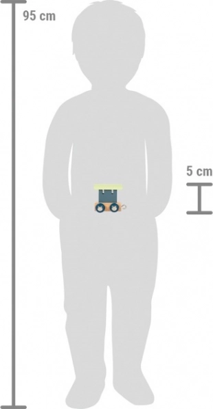Drveni vagončić s modernim dizajnom i kombinacijom plave boje i prirodnog drva izvrstan je dodatak dječjoj sobi i poklon. Potiče maštu, spretnost i koordinaciju. Zahvaljujući zaobljenim rubovima idealan je za male dječje ruke, što osigurava sigurnost i udobnost pri igri.