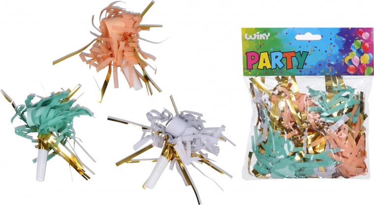 Razveselite svaku proslavu papirnatim party zviždaljkama u nježnim pastelnih bojama. Unose svjež dašak u atmosferu, lagane su, jednostavne za upotrebu i u pakiranju ćete naći 6 komada – idealno za rođendane, vjenčanja i dječje zabave.