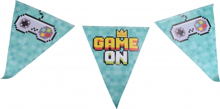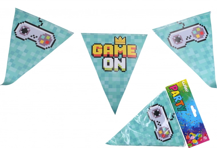 Dodajte svojoj zabavi gamersku atmosferu zahvaljujući dekorativnim zastavicama s dizajnom IGRA. Idealne za rođendane, tematske proslave, dječje partyje i gaming večeri. Zahvaljujući papirnatoj izradi lagane su, lako se vješaju i nakon događaja mogu se ekološki zbrinuti.