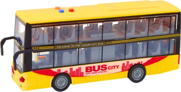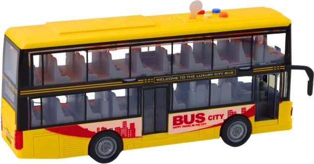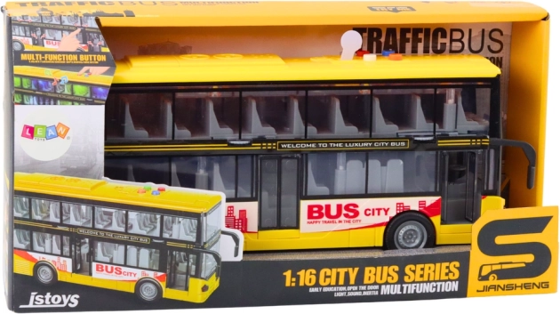 Realistični dvospratni autobus u mjerilu 1:16 razveselit će male obožavatelje gradskih vozila. Nudi svjetlosne i zvučne efekte, pogon zamašnjakom i otvarajuća vrata. Zahvaljujući izdržljivoj plastici i upadljivoj žutoj boji, idealan je za maštovitu igru kod kuće i na putu.