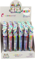 Ova višebojna kemijska olovka s preslatkim motivom jednoroga spaja razigrani izgled i praktičnost. Jednim klikom birate među 10 različitih boja tinte, pa imate sve potrebno za pisanje, podcrtavanje i crtanje uvijek pri ruci.