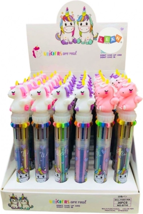 Zabavna i praktična višebojna olovka s motivom jednoroga nudi 10 boja tinte u jednoj olovci. Zahvaljujući automatskom prebacivanju boja idealna je za djecu i kreativno stvaranje, za školu i kućne bilješke.